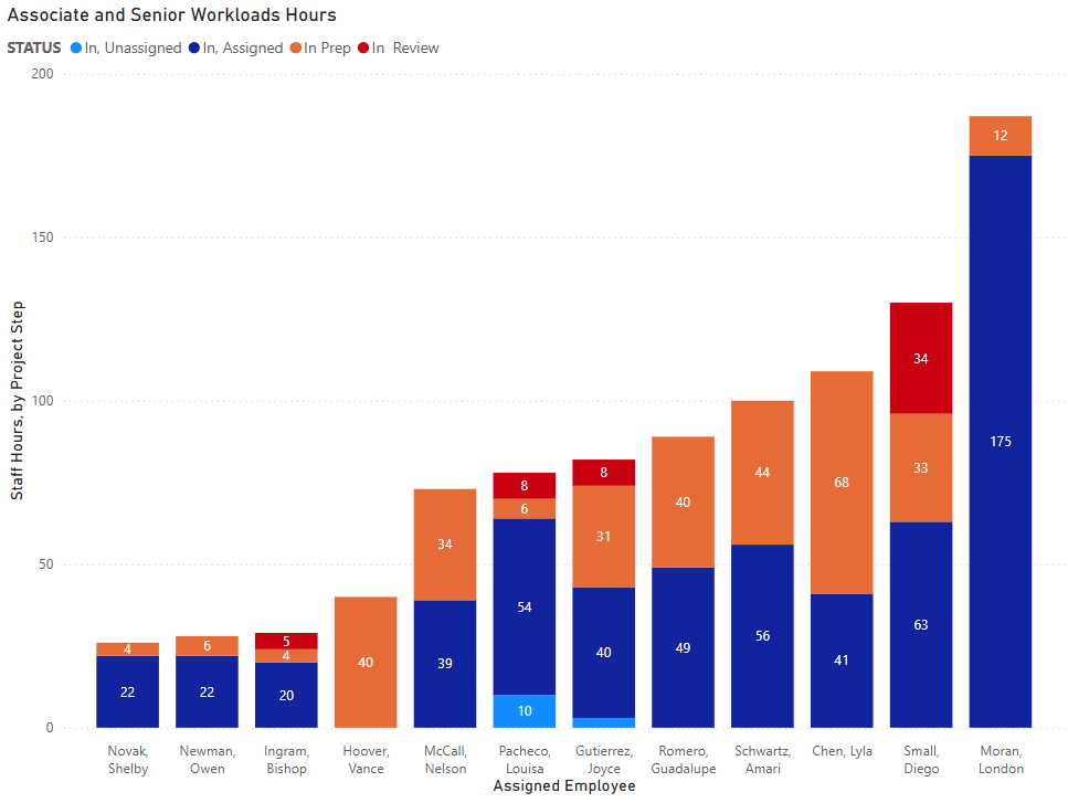 This project analyzes 873 open tax projects representing 4,600 hours of preparer work to optimize task assignment at a mid-sized tax firm. Power BI dashboards were developed to help the Project Manager assign more work efficiently based on employee skill, availability, and project history.